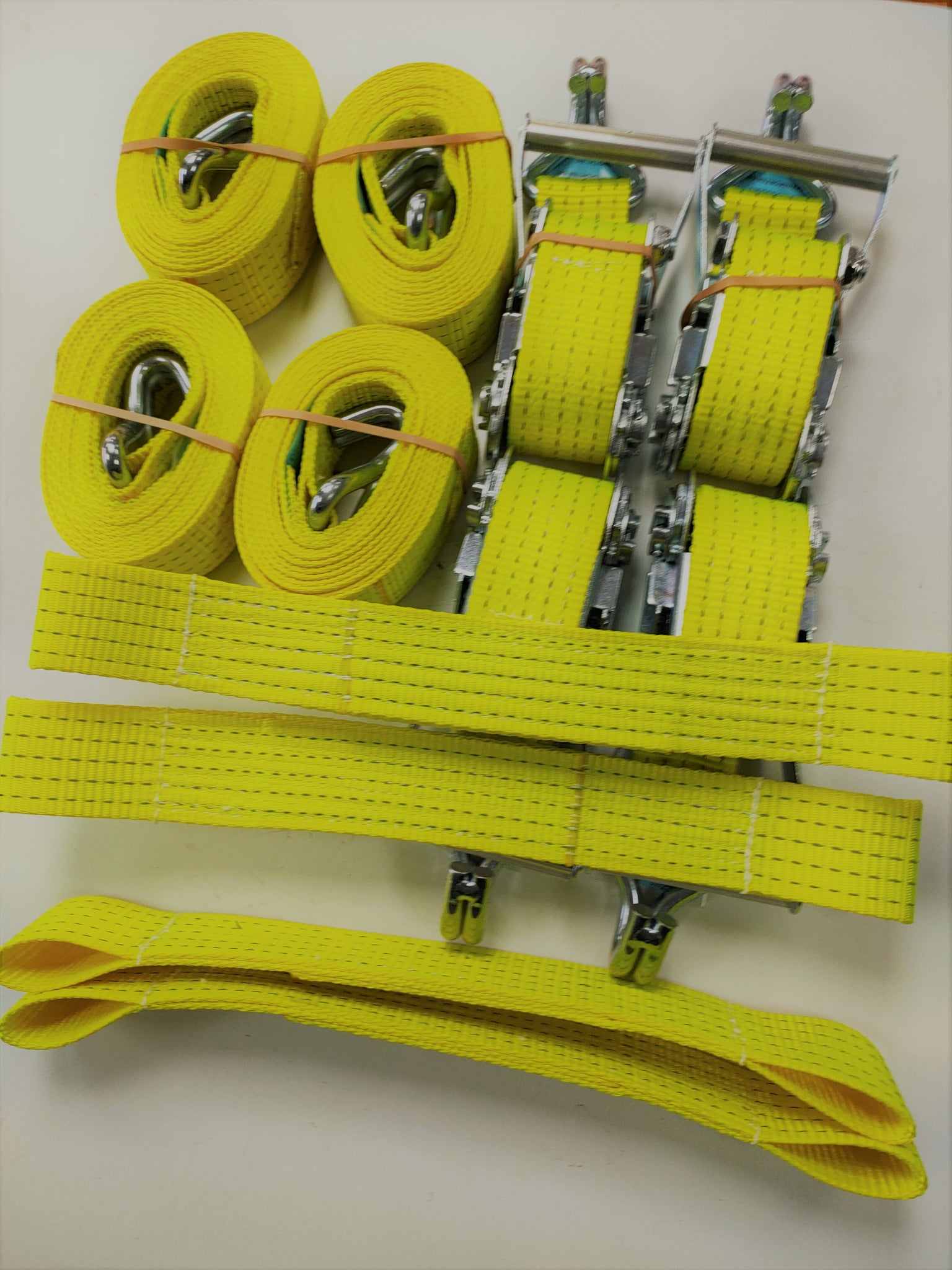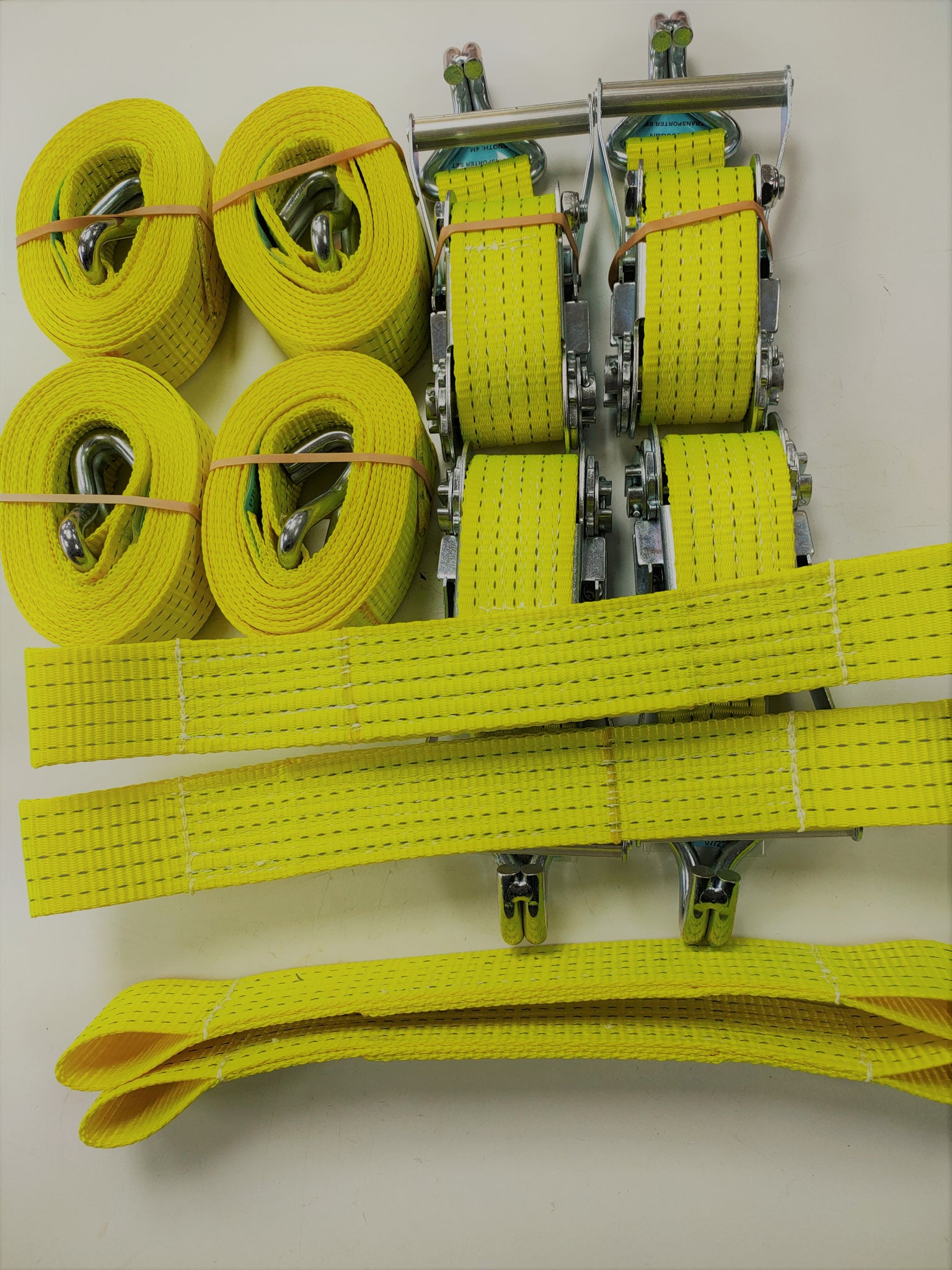 4 x Car Trailer Transporter Hi Vis Recovery Straps Truck Heavy Duty Flat Soft Link Set (50mm webbing)