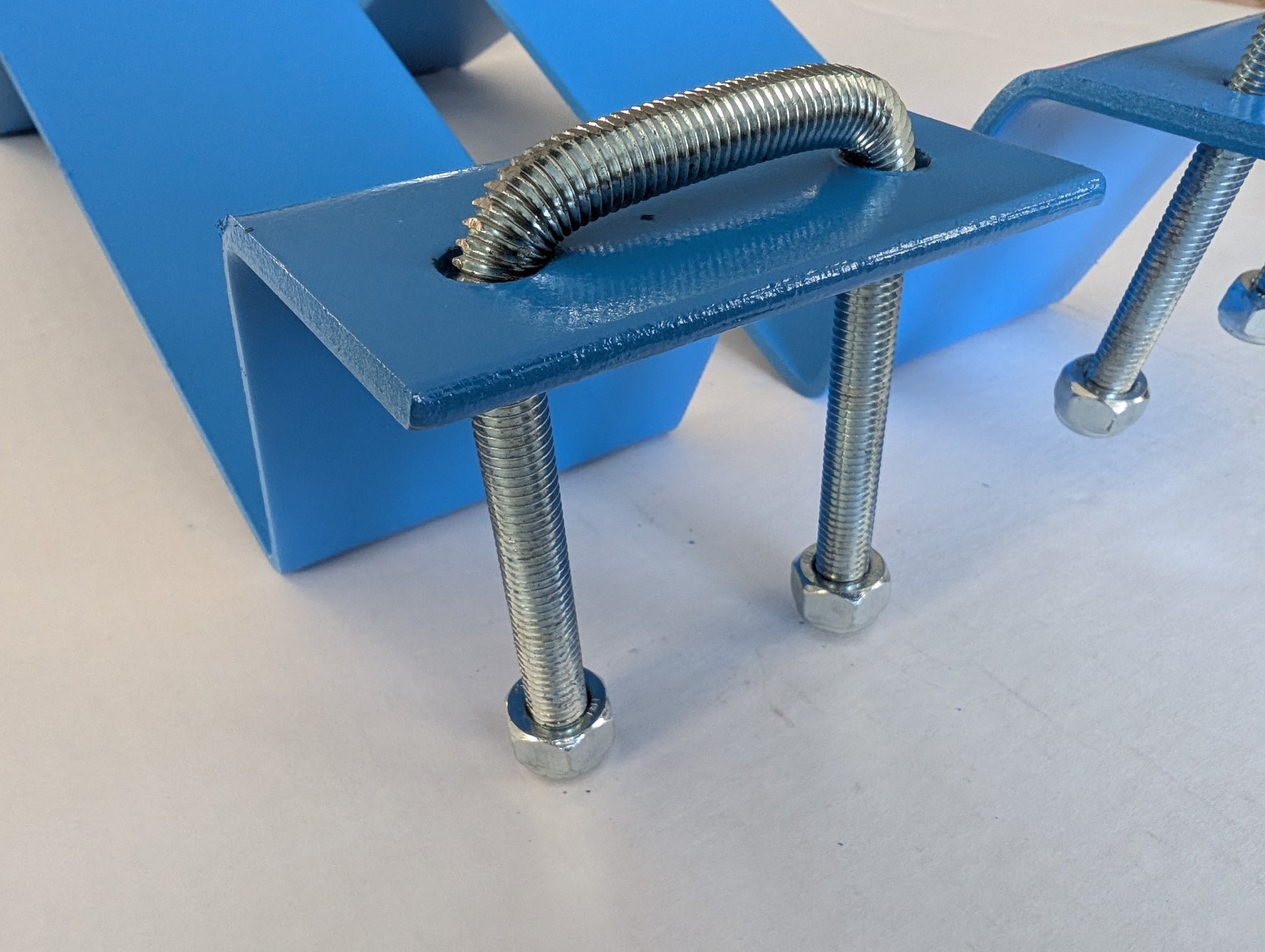 Pipe Cradle attachments that bolt onto the standard Genie Forks that allow secure holding of pipes, tubes, and other round objects to stop them rolling off the forks during operation.